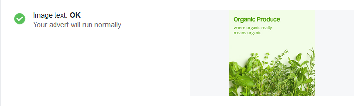 Low – There is some text in the copy and your ad’s reach may be slightly limited.