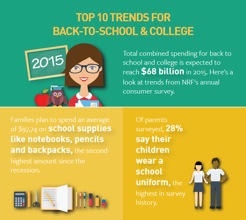 In 2015, the back to school industry was said to be worth $68 billion, with the average family spending $97.74 on school supplies: