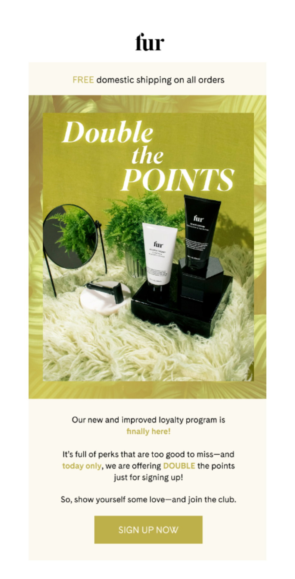 To increase brand loyalty, Fur implemented two new loyalty tiers with incentivized purchase perks to acquire new customers and encourage existing rewards members to continuously engage. We then collaborated as a team across paid and organic channels to creatively and consistently promote and differentiate Fur’s new and improved loyalty program to encourage sign ups.