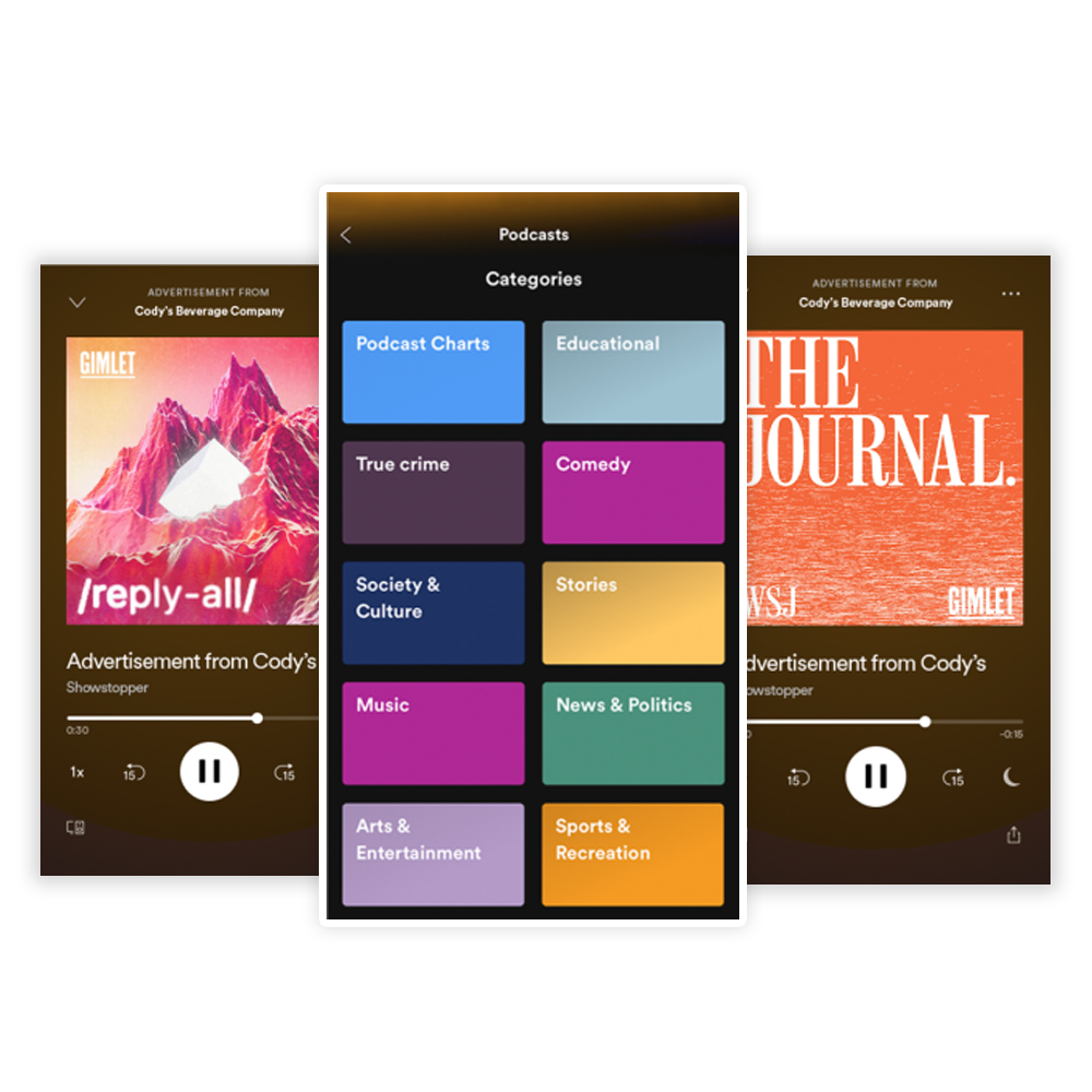 Dynamically insert 15- or 30-second mp3 creatives into streaming radio to individuals targeted with the full array of digital signals, or partner directly with prominent podcasters like Joe Rogan or Lauryn Evarts Bosstick to leverage their trusted relationship with listeners.
